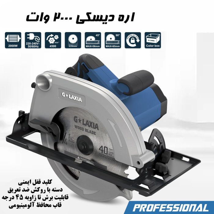 معرفی اره دیسکی 2000 وات گلکسیا مدل 76505
