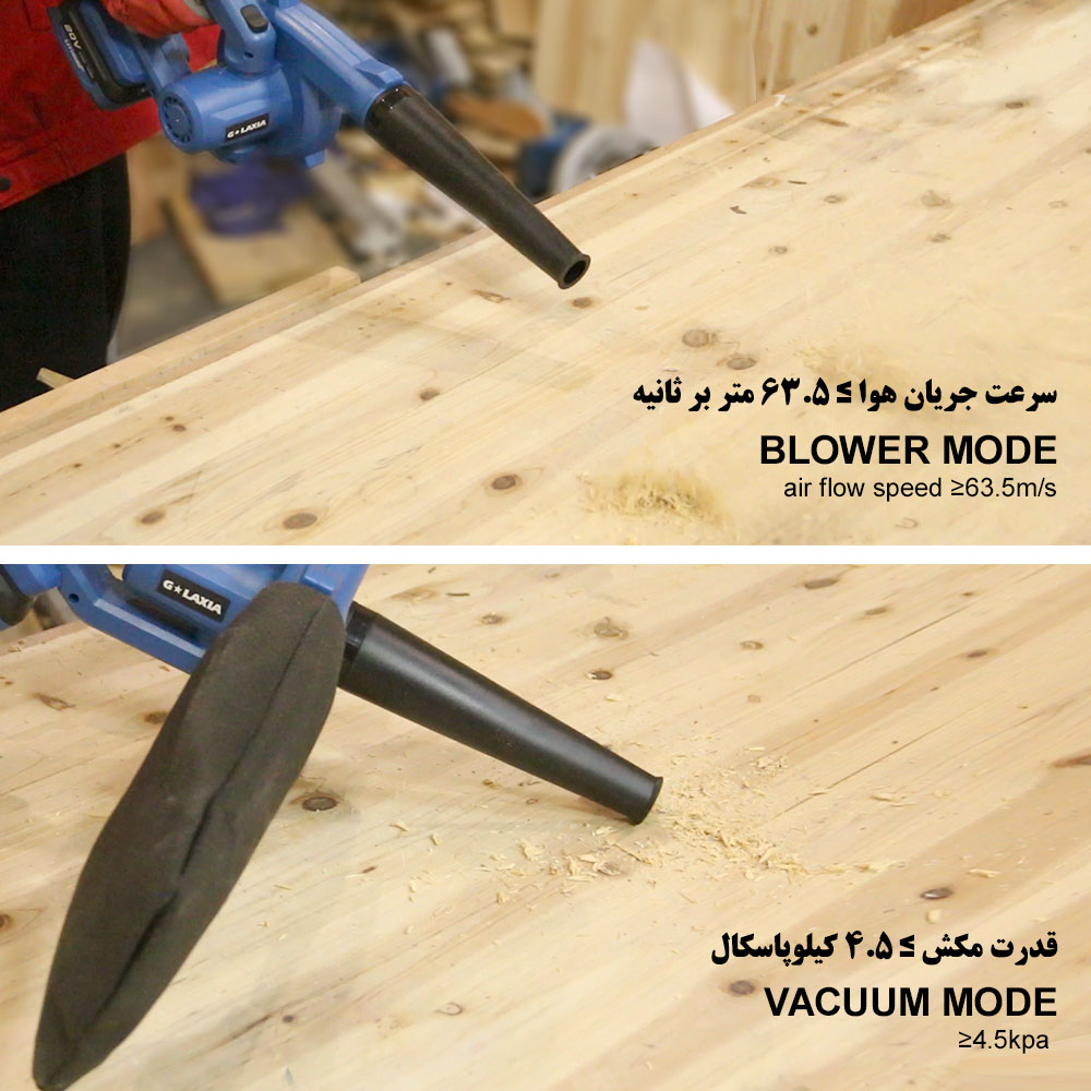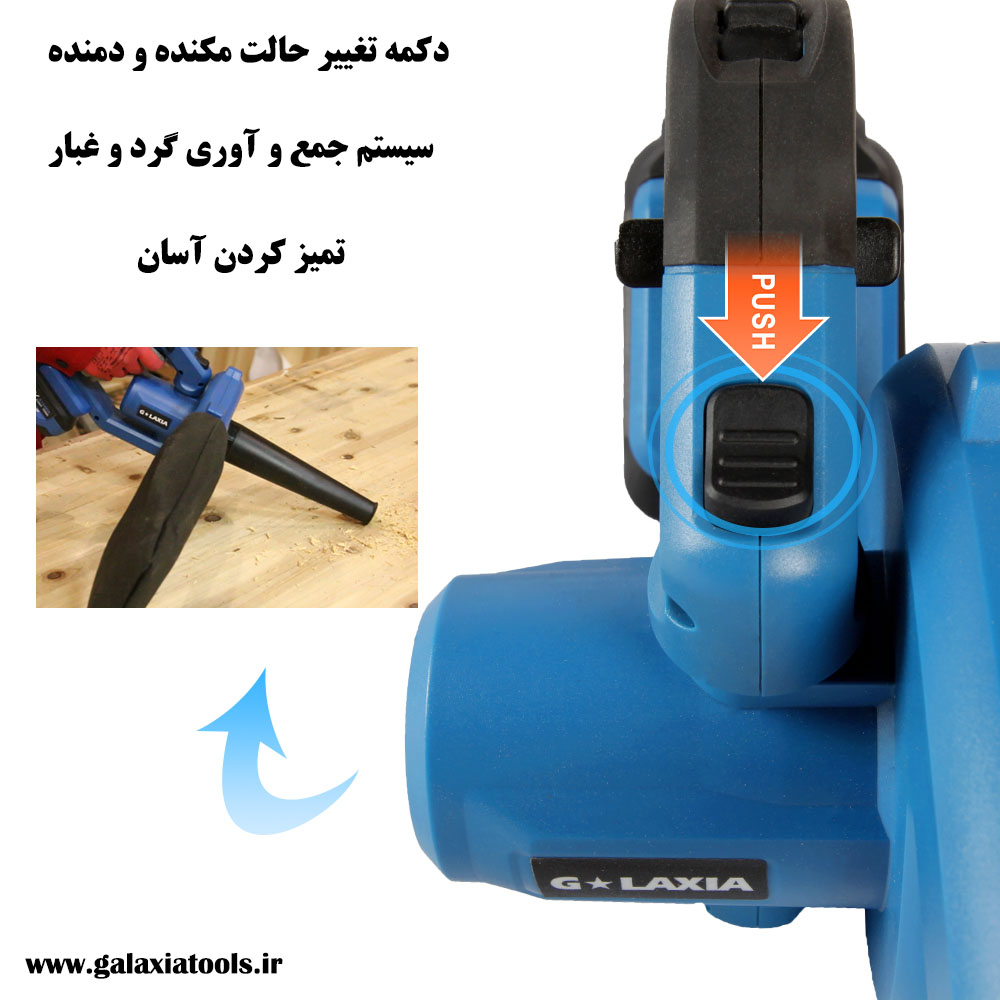 - عملکرد چندگانه: این دستگاه بهصورت همزمان بهعنوان یک بلوور و یک مکنده عمل میکند، که آن را برای تمیزکاری و جمعآوری گرد و غبار بسیار مناسب میسازد.