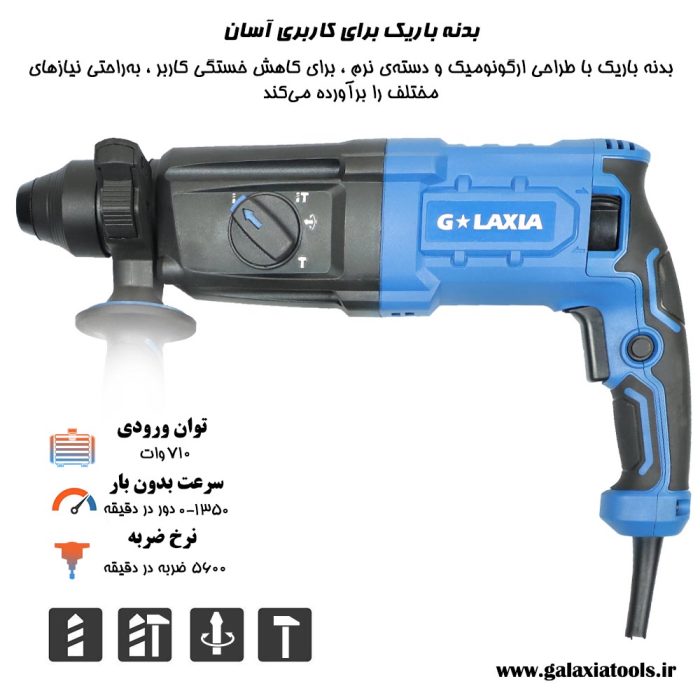 مشخصات کامل دریل بتن کن 3 کیلویی 710 وات گلکسیا مدل 58101
