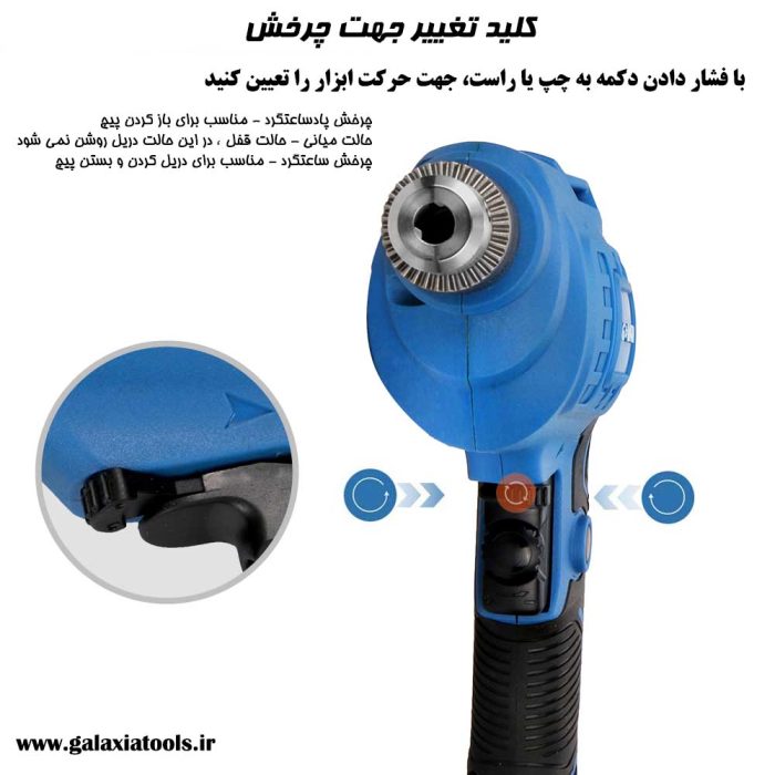 کلید تنظیم سرعت متغیر به کاربران این امکان را میدهد تا با دقت بیشتری سرعت مناسب برای مواد مختلف را انتخاب کنند. قابلیت چرخش دوطرفه (چپگرد و راستگرد) نیز برای باز و بسته کردن پیچها، انعطافپذیری دستگاه را افزایش میدهد.