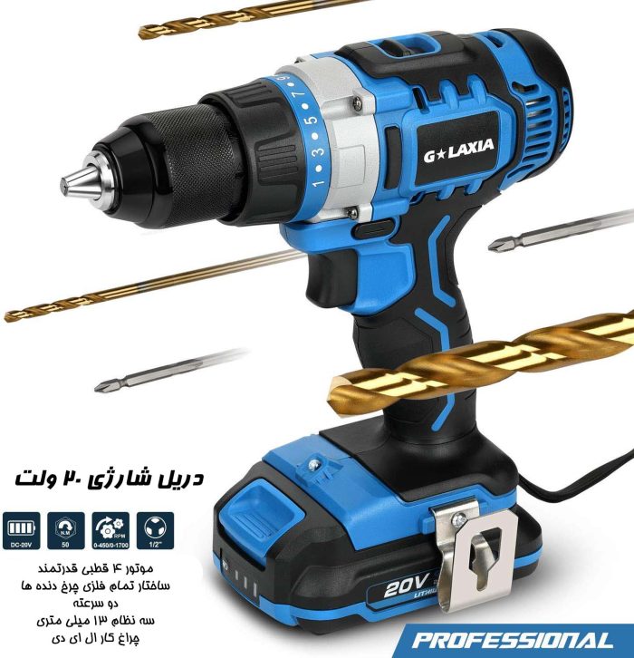 معرفی دریل شارژی 20 ولت گلکسیا مدل 95602