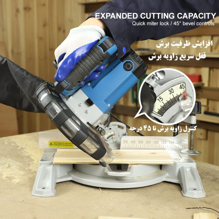 • زاویه 45-0 درجه: مناسب برای برش‌های زاویه‌دار تا ابعاد 120×34 میلی‌متر