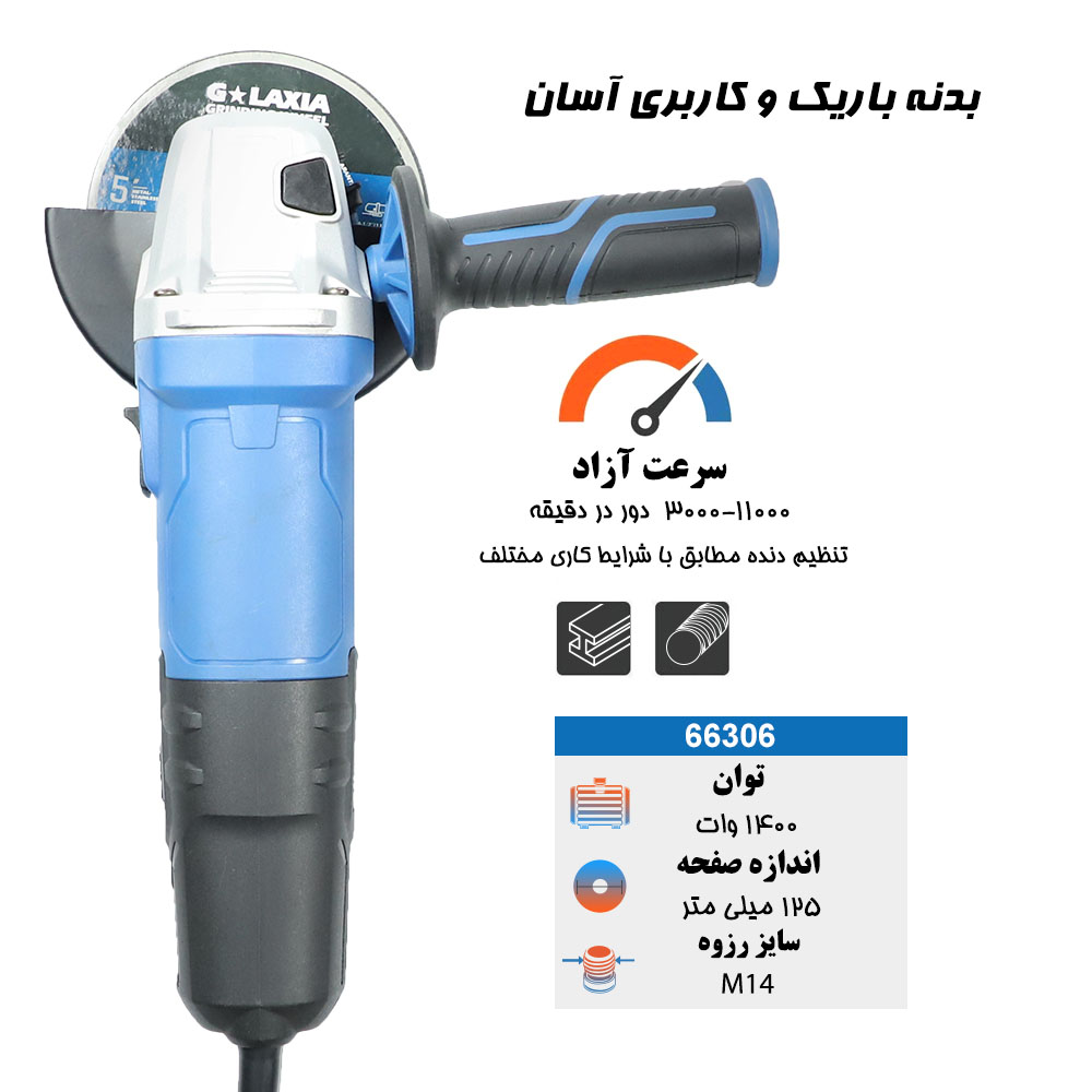 گلکسیا 66306 با طراحی پیشرفته، قدرت بالا، و امکانات کاربردی، یک انتخاب عالی برای کاربران حرفهای است. این ابزار میتواند در پروژههای مختلف برش و سایش عملکردی عالی داشته باشد و نیازهای مختلف کاربران را به بهترین شکل ممکن برآورده کند.