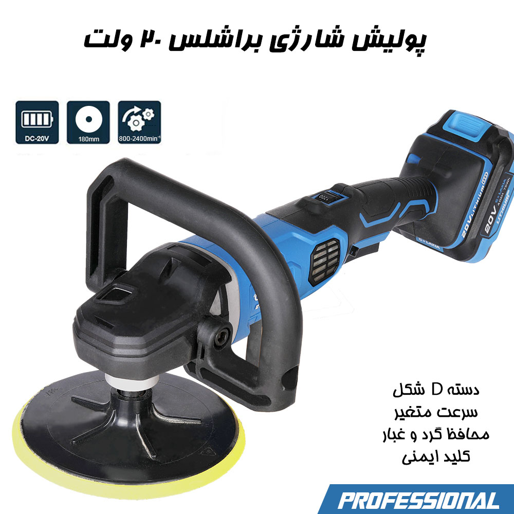 - ولتاژ: 20 ولت DC که قدرت و پایداری لازم برای انجام پولیش باکیفیت را فراهم میکند.